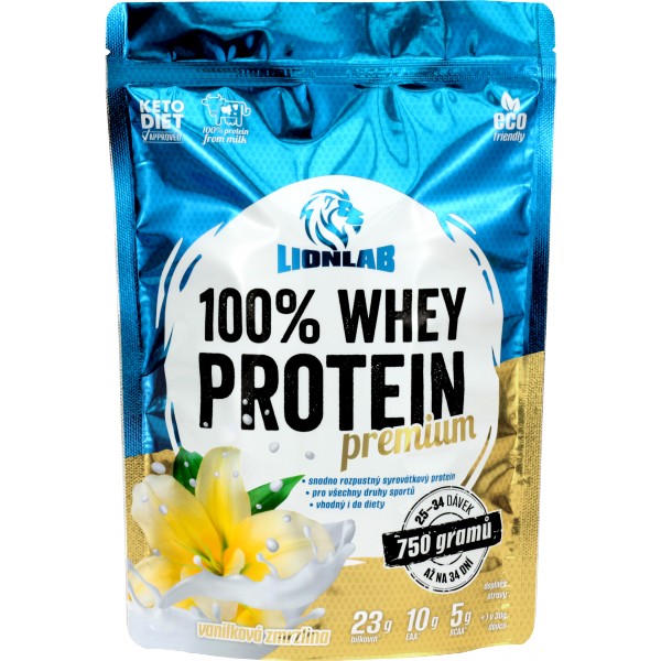 Popis obrázku: Lionlab 100 % Whey Protein 750 g - akce 1+1