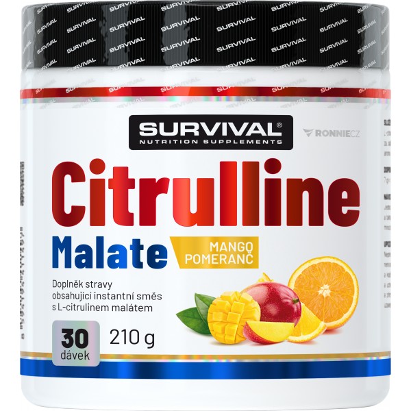 Citrulin se běžně vyskytuje i v některých potravinách, jedním z nejbohatších zdrojů je vodní meloun (obsahuje zhruba 2 gramy citrulinu na 100 g), dále pak červená řepa (cca 1,5 gramu na 100 gramů) a také třeba hovězí, vepřové nebo kuřecí maso (cca 0,5–0,7 gramu na 100 gramů). Citrulline Malate od Survivalu obsahuje v jedné dávce 6 gramů citrulinu!