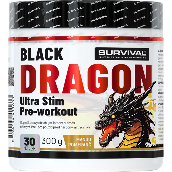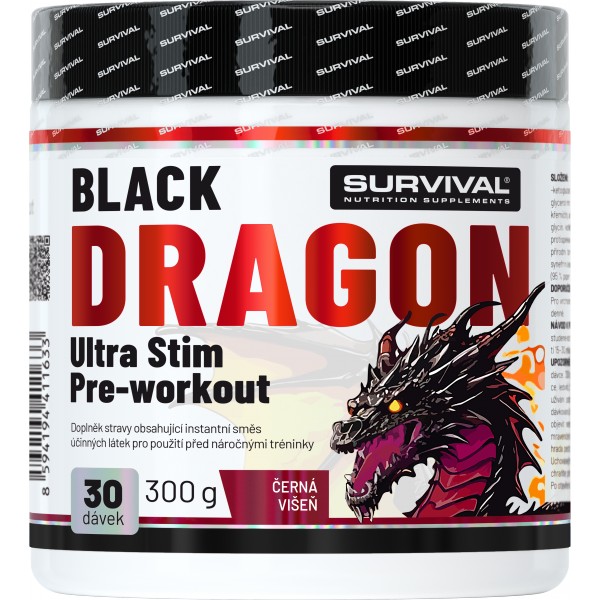 Popis obrázku: Survival NAKOPÁVAČ Black Dragon Ultra Stim Pre-workout - 300 g, černá višeň